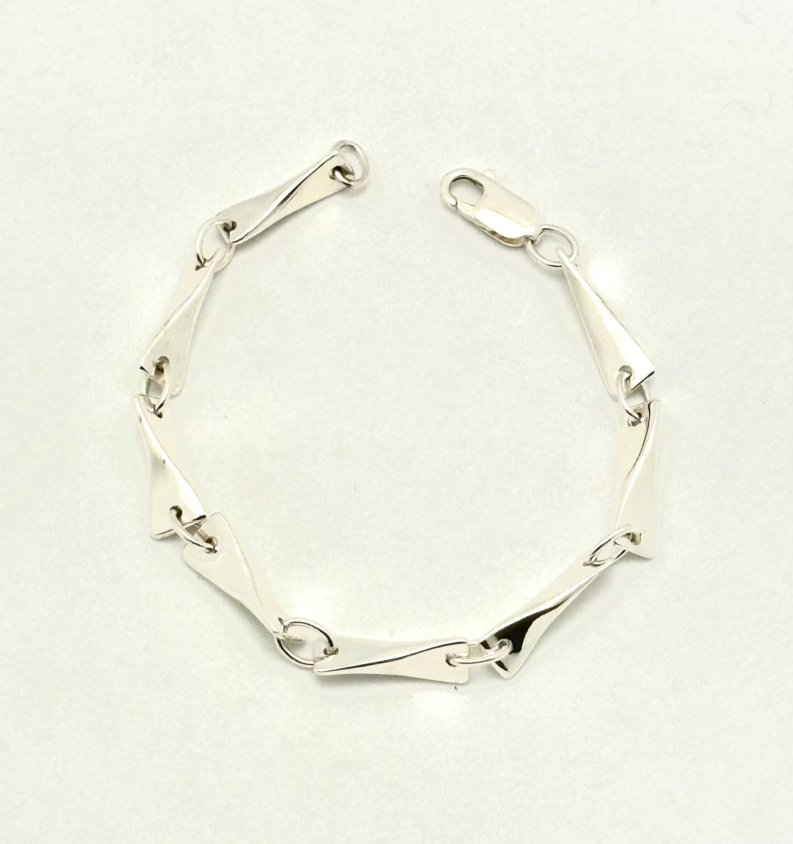Bracelet - sterling silver with hand forged links (10), each link measuring 13mm x 3mm,...