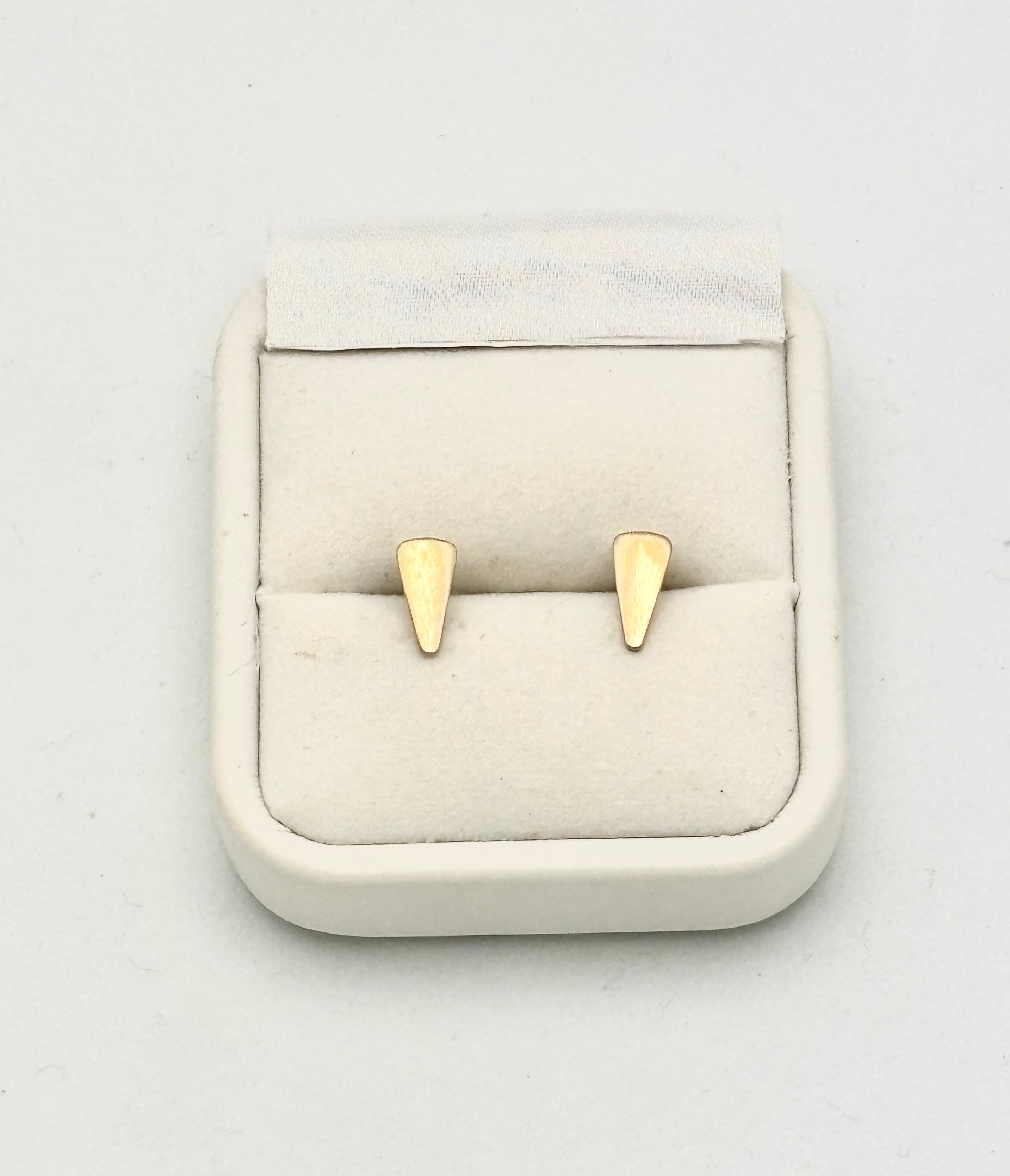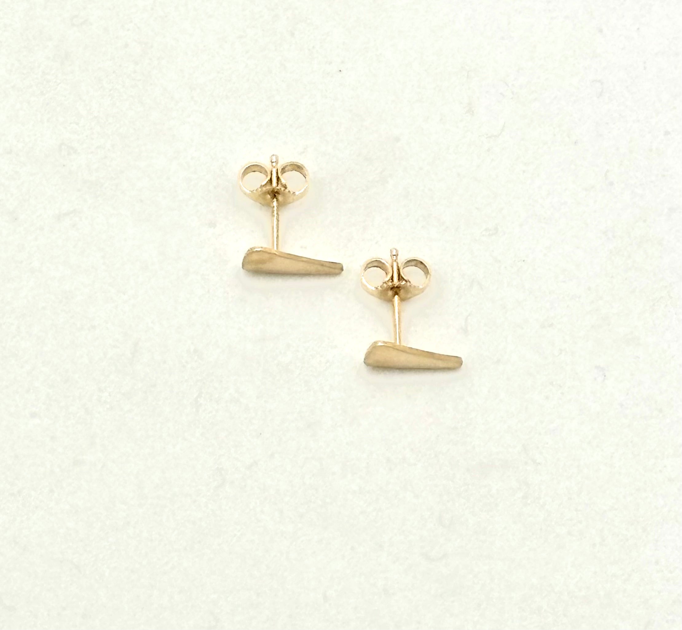 Earrings - 14k yellow gold shield shaped earrings, measuring 10mm x 5mm, brush finish for a contemporary feel.