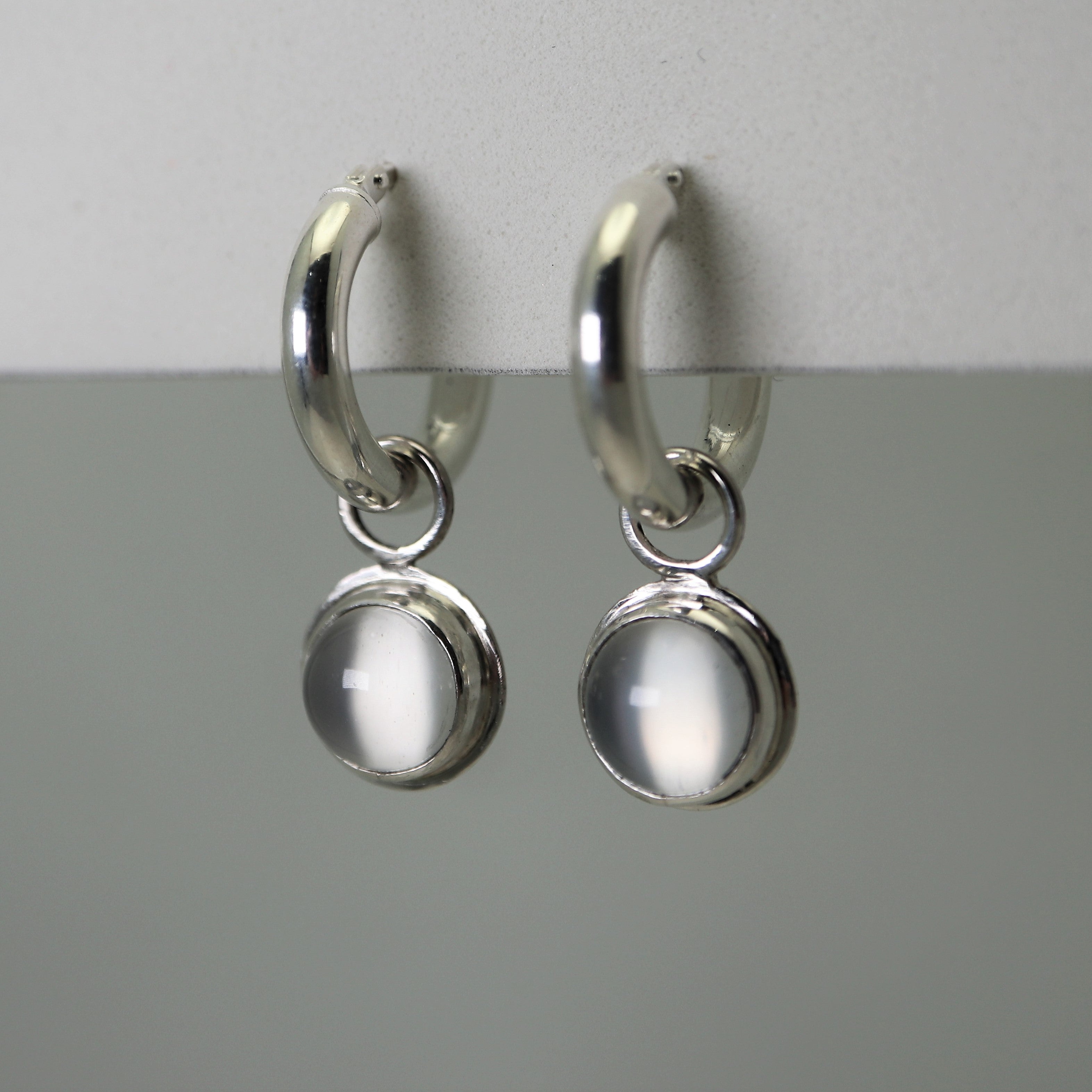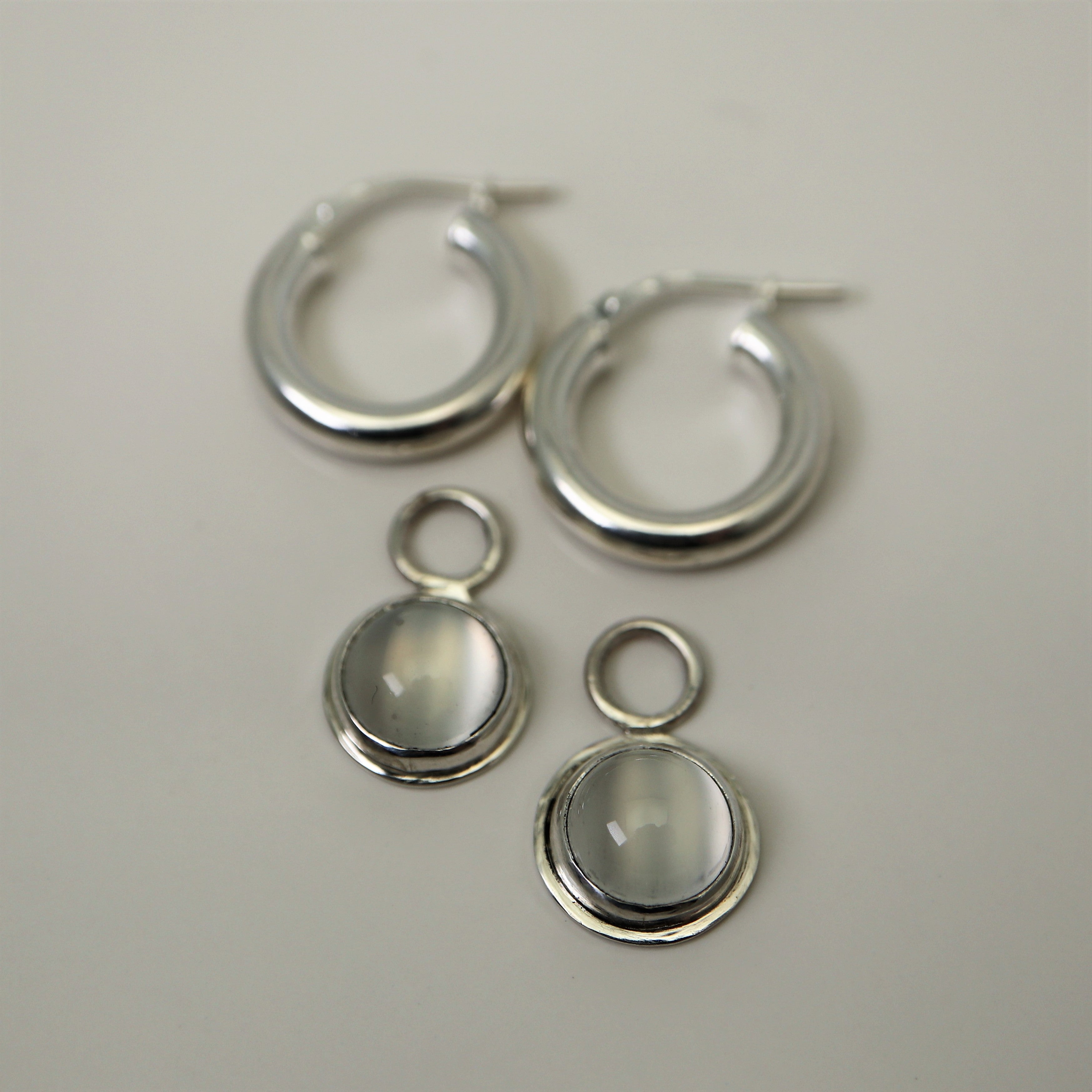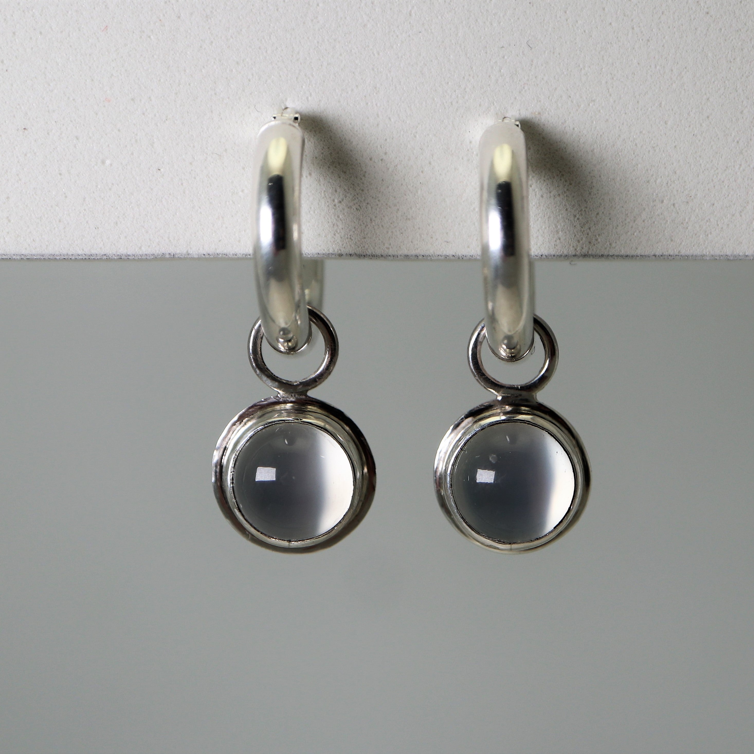 styled to hang on 3mm thick hoops, bold but in an everyday anywhere proportion.