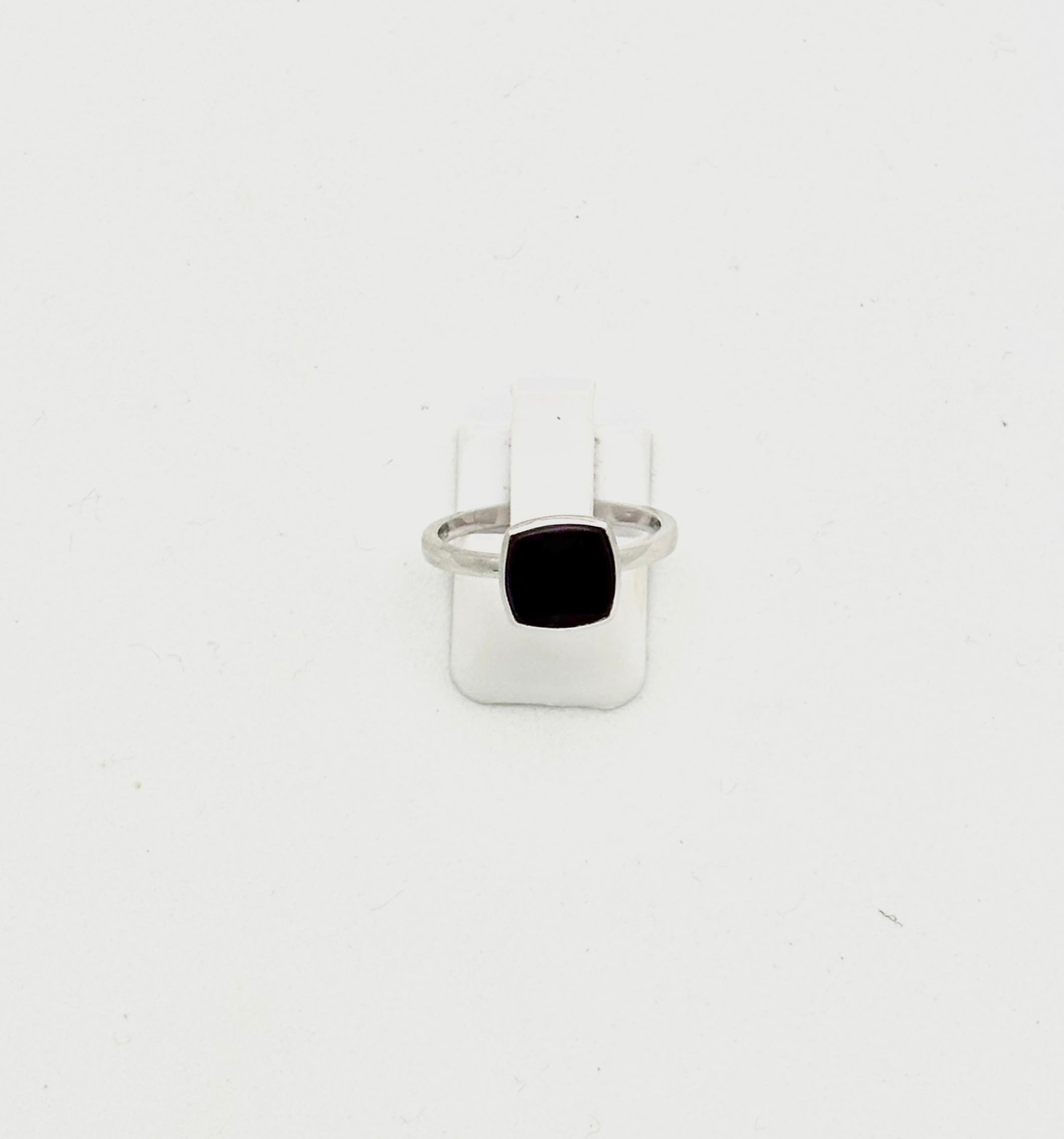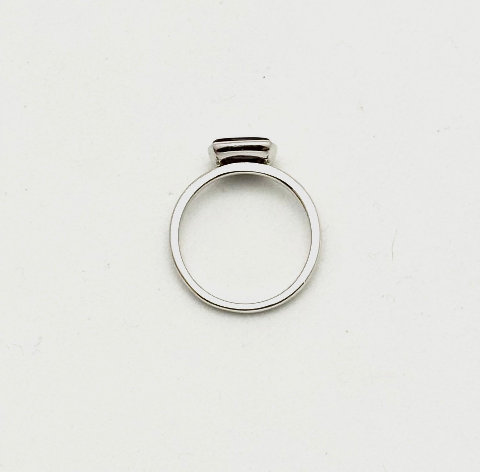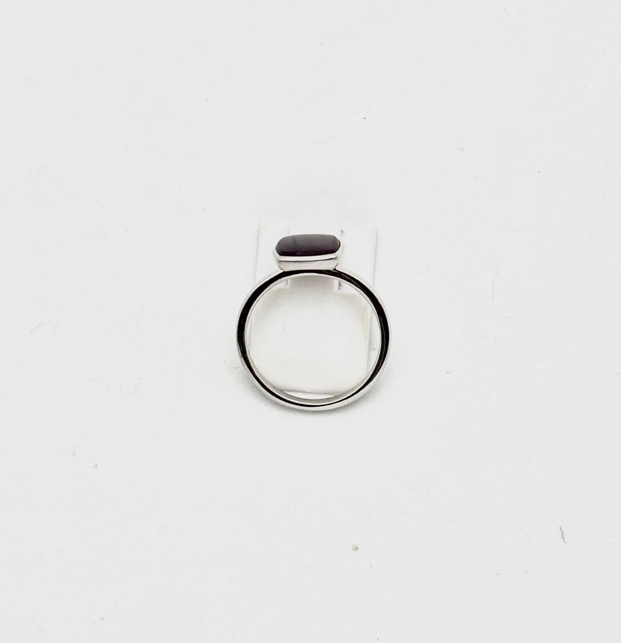 Ring - sterling silver with square cushion shaped, bezet set, 9mm Sugilite on 2mm (stackable) shank, size 6.5.