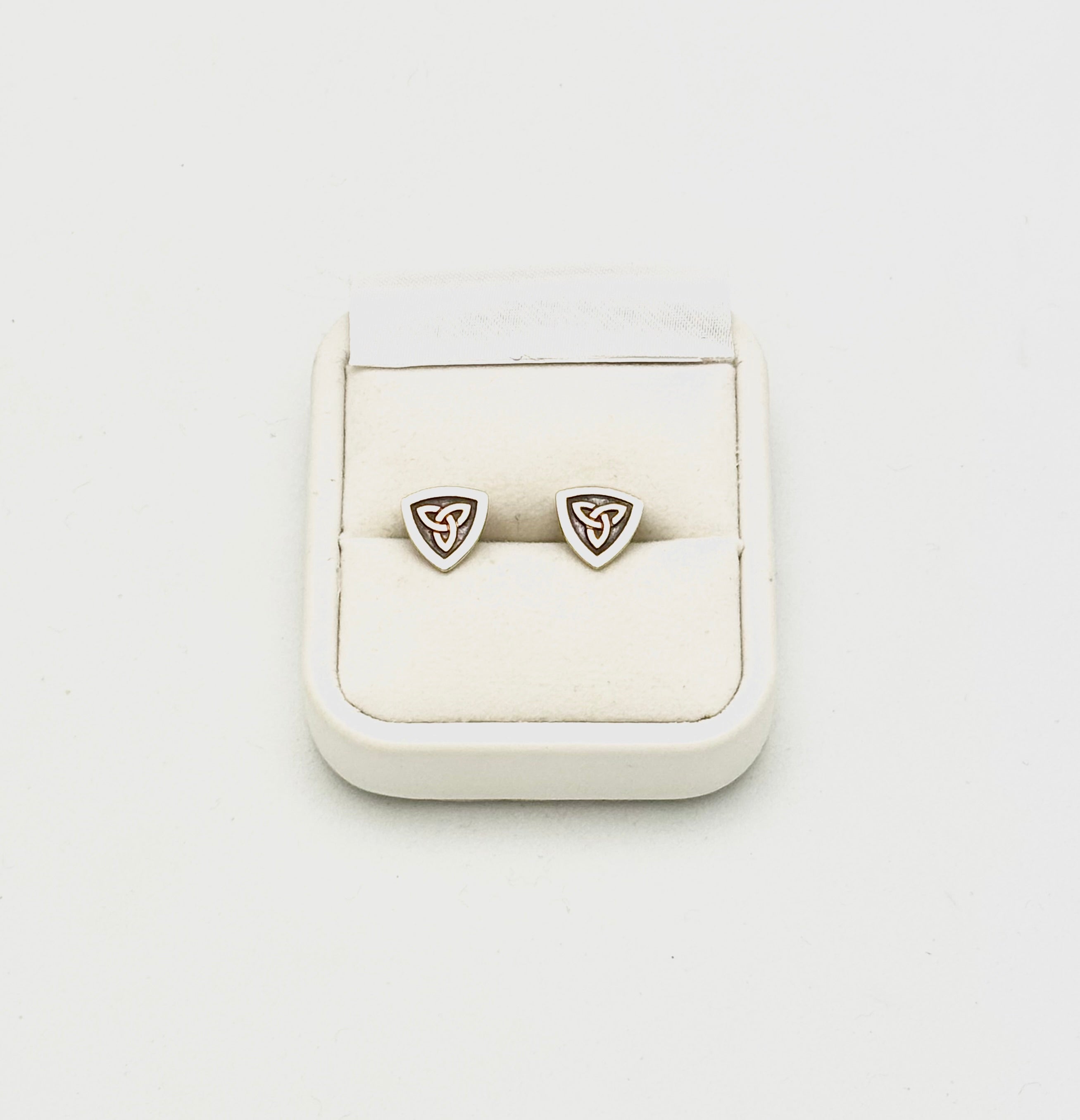Earrings - sterling silver with 14k yellow gold Celtic knot overlay, 10mm in diameter.