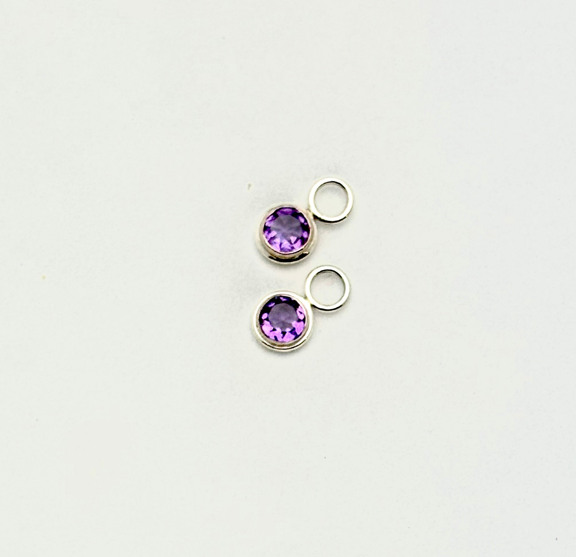 Earring enhancers - sterling silver with 6mm faceted Amethysts, AAA, set in tube bezel with wrap design.