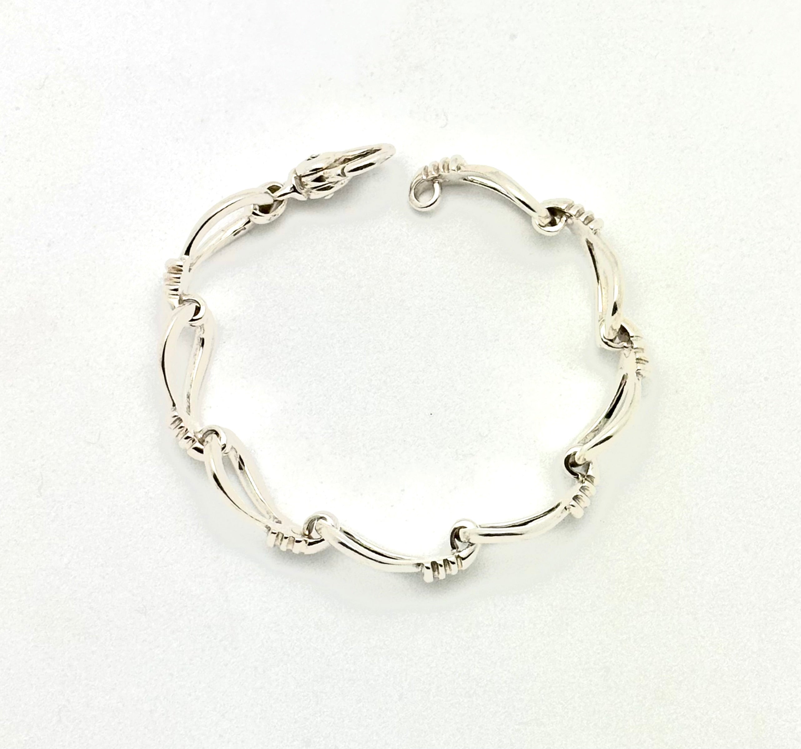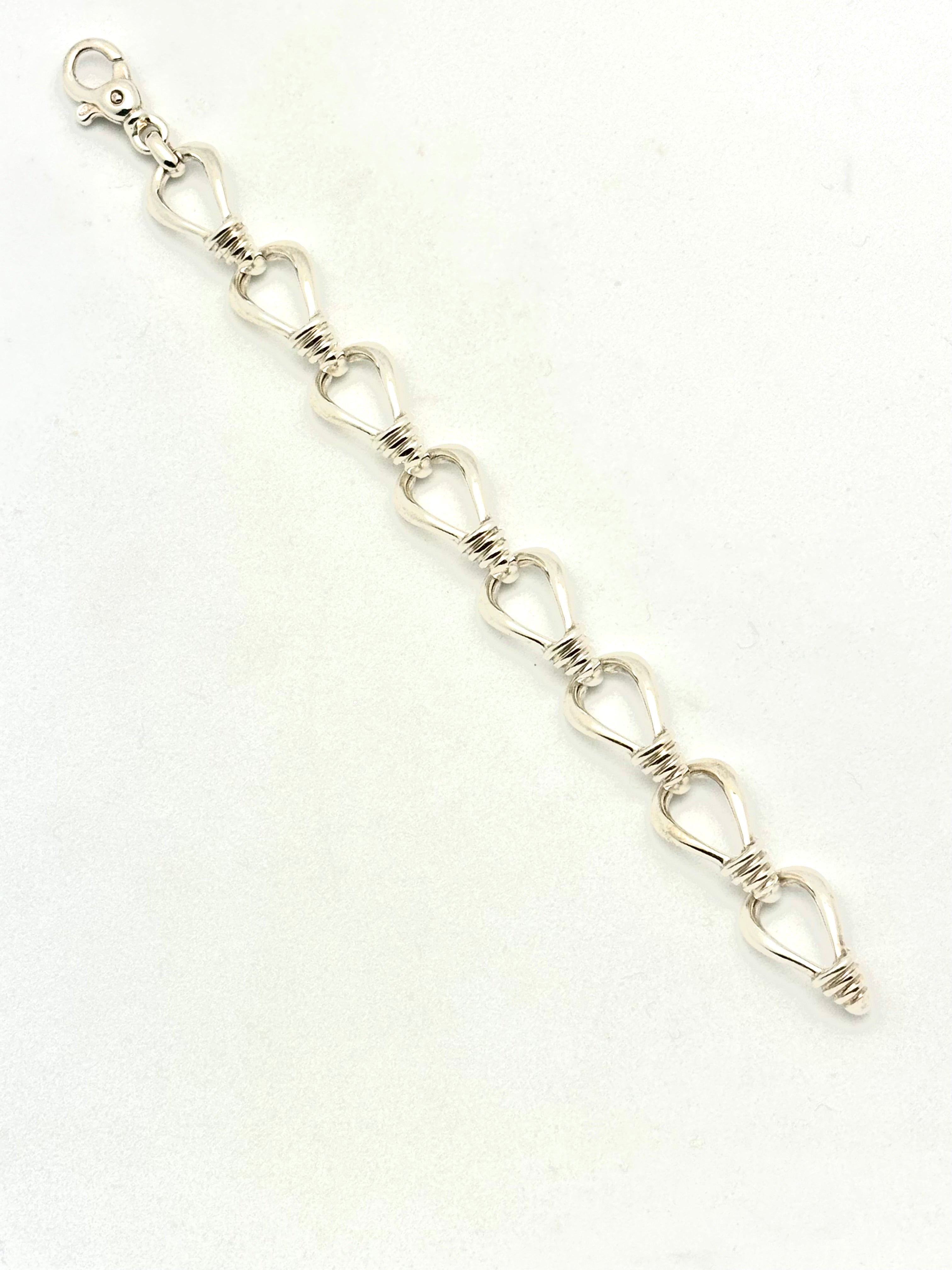 Bracelet - Sterling Silver large wrap design teardrop link (8) with large lobster clasp, 7 inches long.