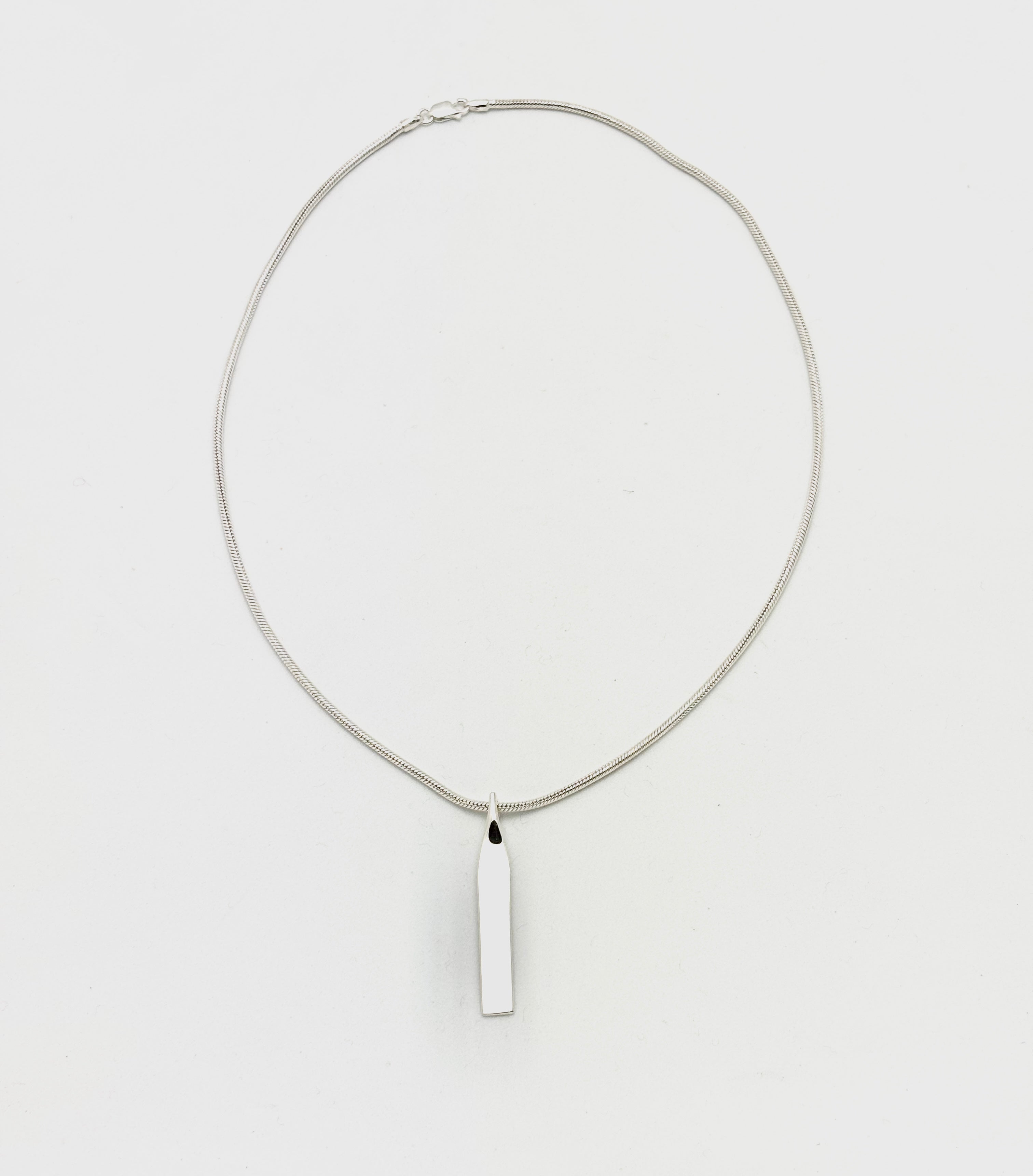 Pendant - sterling silver forged style linear pendant, 43mm long and 6mm wide, offered on 18 inch sterling silver snake chain