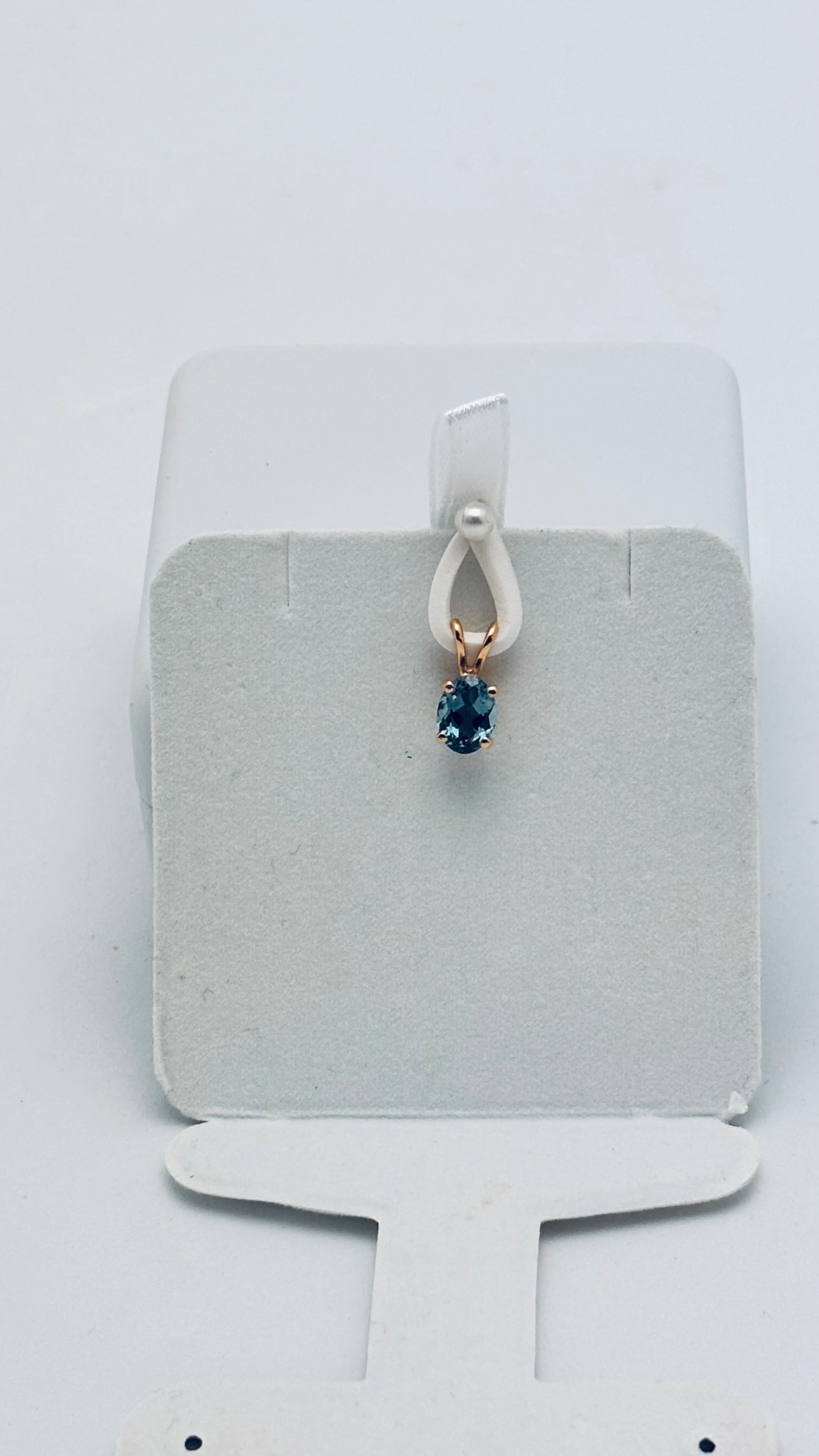 Pendant - 14k yellow gold with 8mm x 6mm oval faceted Swiss Blue Topaz, set in 4 prong basket design with bunny ear bail for chain. A sweet addition to any jewellery box!