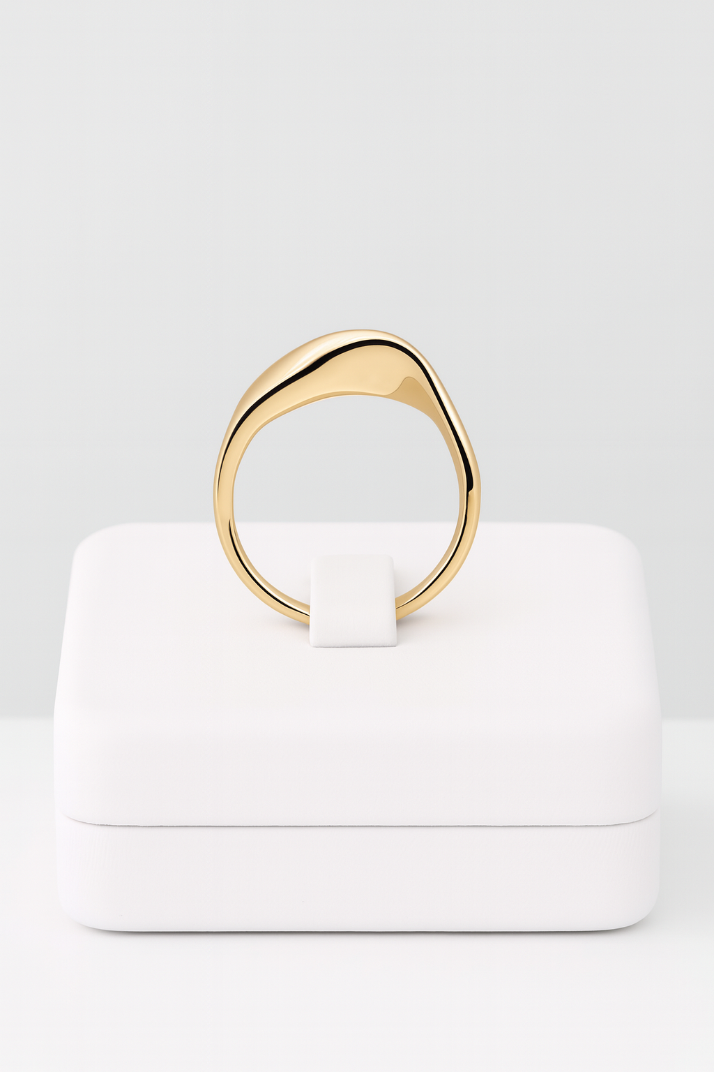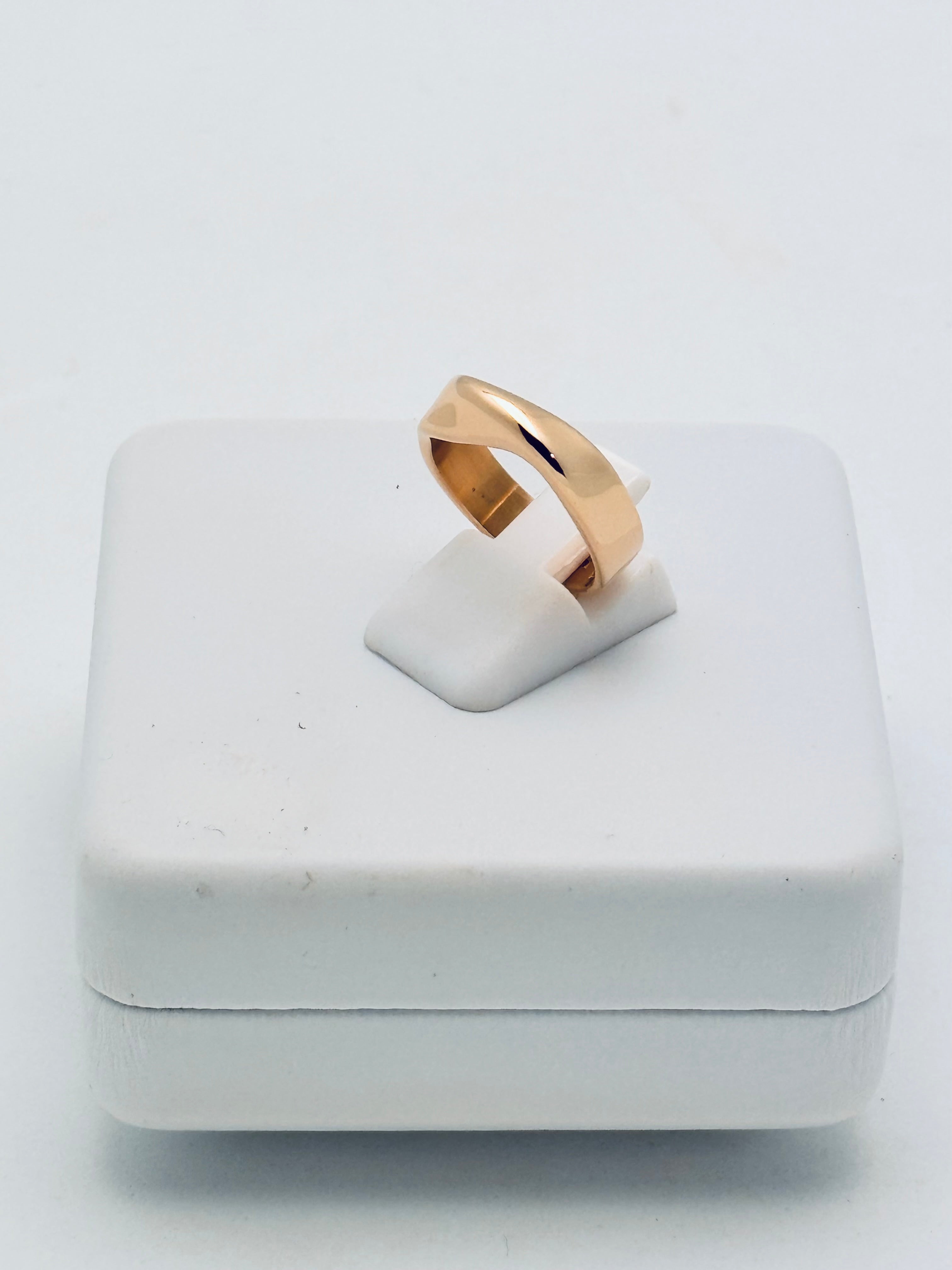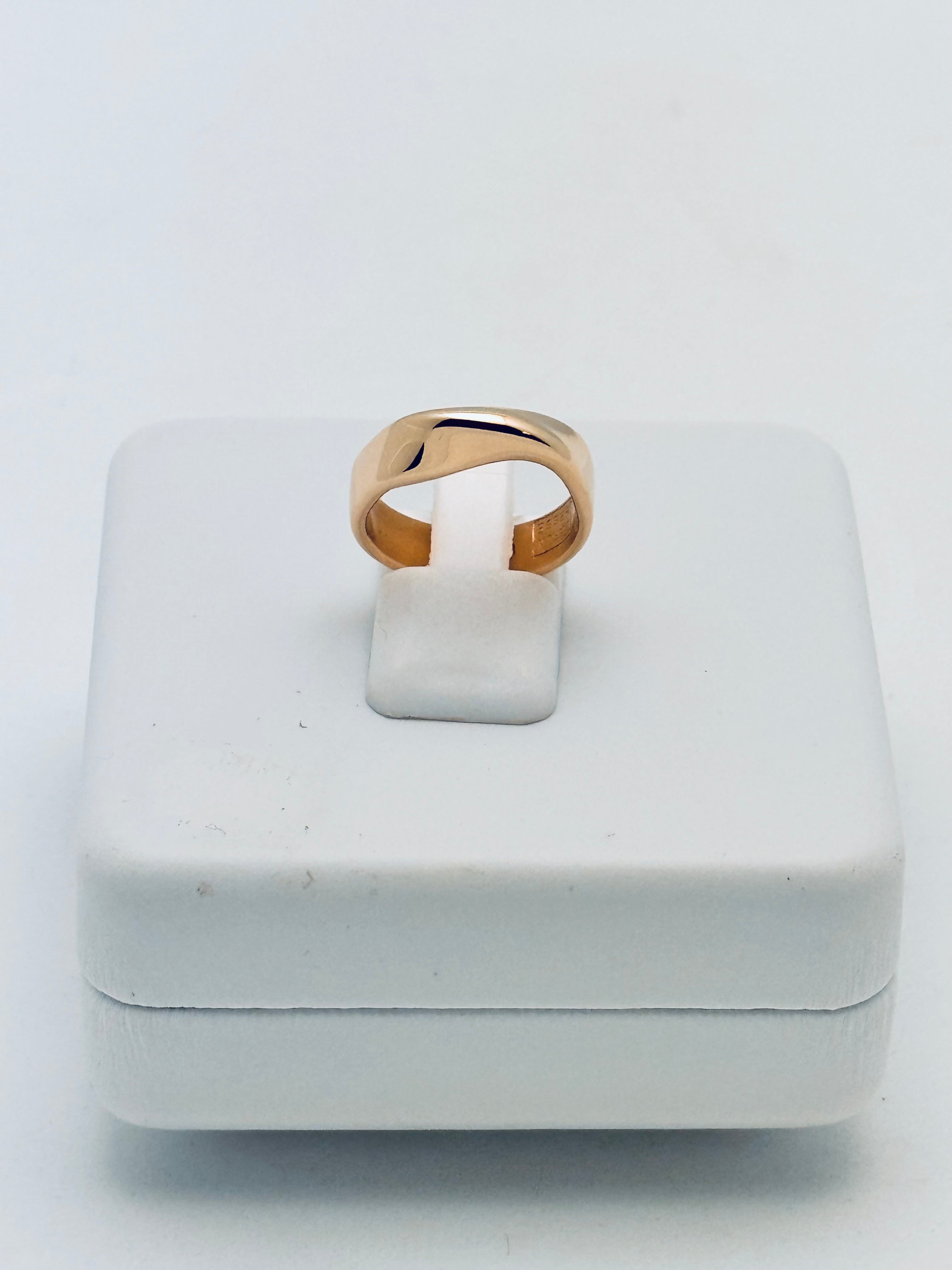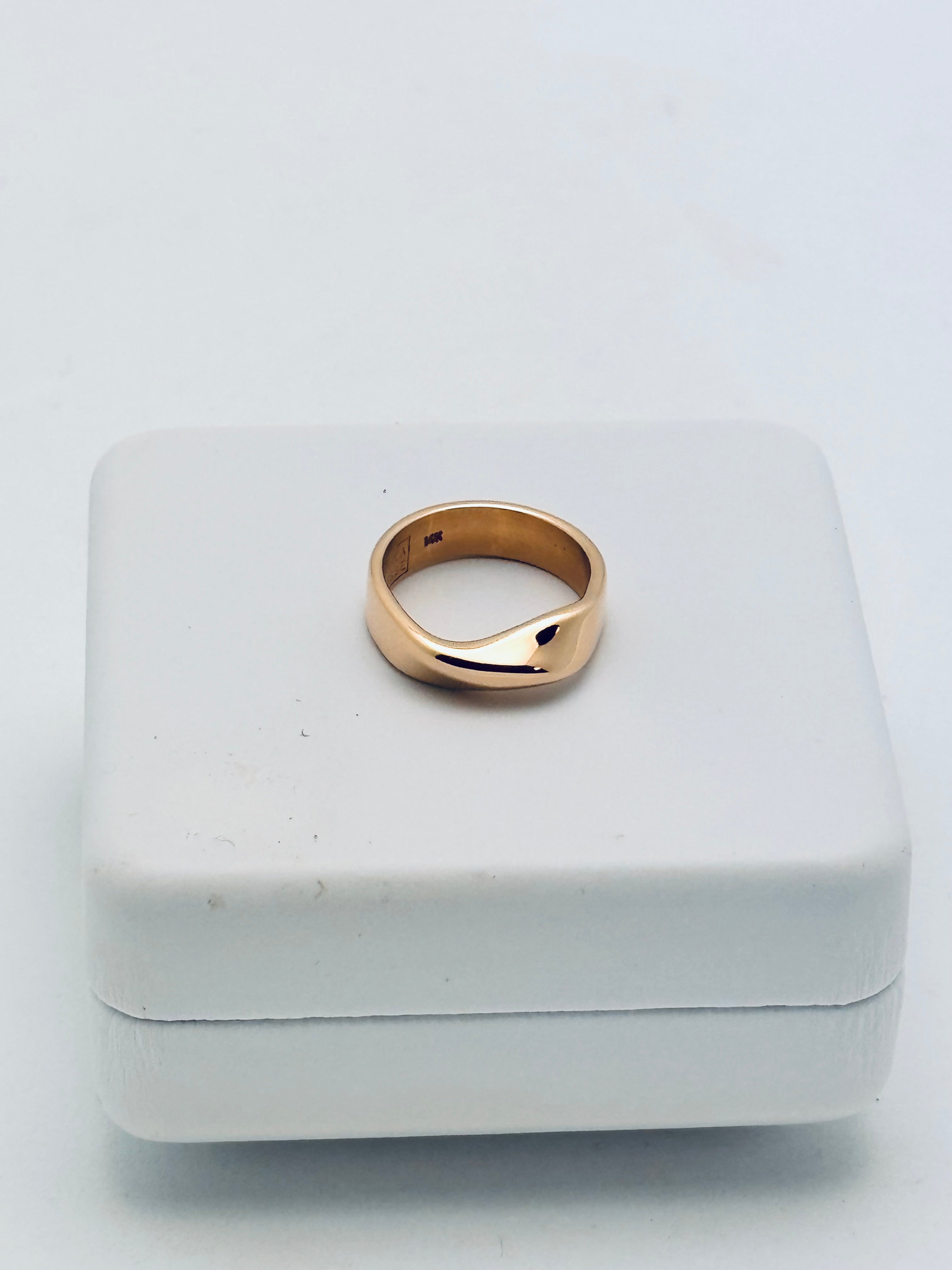 Ring - 14k yellow gold band with a sculptural twist design, 6mm wide, 1.85mm thick, made in a size 7.